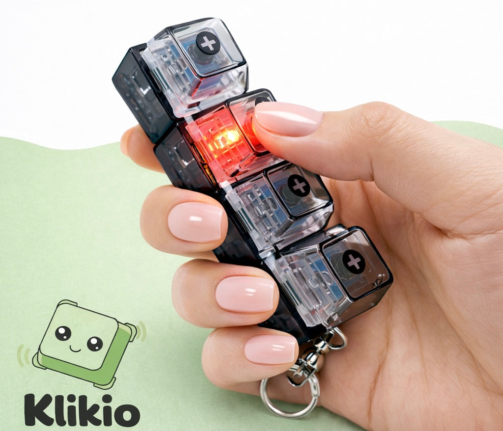 Klikio je antistresová klíčenka, která ti pomůže zklidnit hlavu, snížit napětí a zlepšit soustředění. Stačí pár kliknutí - doma, ve škole nebo v práci.
